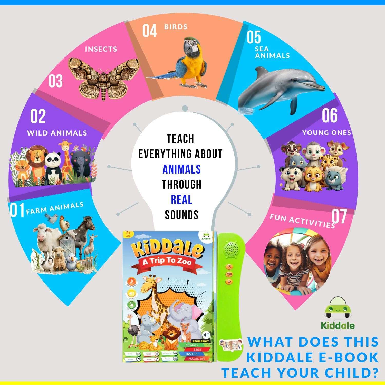 किडडेल इंटेलिजेंट एनिमल साउंड बुक, जिसमें जानवरों की आवाज़ें, गतिविधियाँ, कहानियाँ और कविताएँ हैं (2-4 साल के बच्चों के लिए)